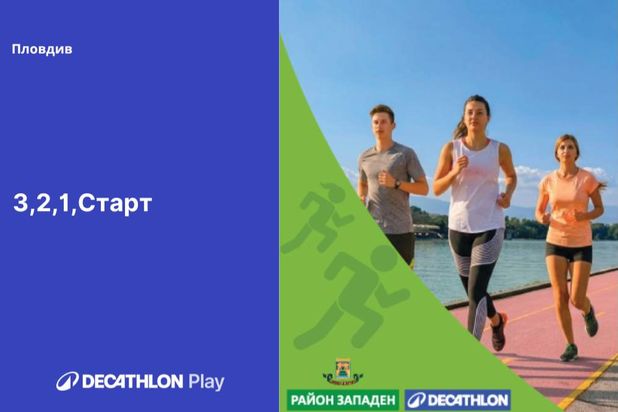 Крос „3, 2, 1 ... Старт“ Дата: 25 април (събота) Място: Гребна база, Пловдив (район „Западен“) Старт: 10:00 ч Трибуните Финал: Трибуните Район „Западен“ и „Decathlon България“ ви канят да станете част от събитието. Кросът „3, 2, 1 ... Старт“ е чудесна възможност да покажете спортния си дух, да се присъедините към общност от хора, които обичат движението и здравословния начин на живот, и да подкрепите благотворителна кауза в помощ на дете. Какво ви очаква: • Крос с дължина 5 км, подходящ e за участници на възраст 16+ години • Музика, добро настроение и много положителни емоции • Томбола с награди за всички финиширали участници Защо да участвате? • Ще отправите предизвикателство към себе си • Ще подкрепите благотворителна кауза и ще помогнете на дете • Ще създадете нови приятелства Регистрация: Регистрирайте се предварително на платформата: activities.decathlon.bg или на място която ще бъде пред трибуните и ще отвори в 9.00 ч. В деня на събитието ще получите своя стартов номер – с него можете да участвате в томболата. *Кросът няма състезателен характер. Очакваме ви на Гребната база на 25 април – нека заедно бягаме за здраве и в подкрепа на доброто!