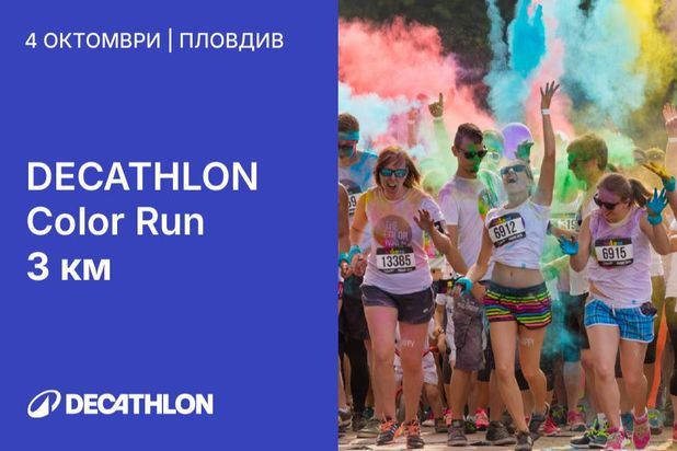 DECATHLON Пловдив съвместно с Район Тракия организира DECATHLON COLOR RUN 3 км – За малки и големи! Сборен пункт за получаване на стартови номера в 9:30 ч на адрес Бул.Освобождение 159 на спирката на Томов Плаза Старт в 10:00 ч Очакваме ви за да се забавляваме. Готови ли сте за 3 километра усмивки, движение и експлозия от цветове? Цветният крос не e просто бягане – това е празник за цялото семейство! 💥 Какво ви очаква: 🔹 3 км лек маршрут, подходящ за всички възрасти 🔹 Цветни зони, през които ще преминете, обагрени от глава до пети 🔹 Много смях и настроение 🔹 Фото моменти и цветни изненади Независимо дали тичаш, ходиш или се забавляваш с приятели – тук мястото е за теб! 🎽 Обуй маратонките, облечи бяла тениска и ела да се впуснем в най-шареното бягане на годината!